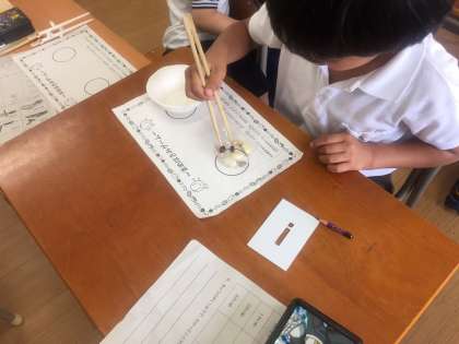 今日の指導は、2年生でした。テーマは「めざせ!おはし名人」。