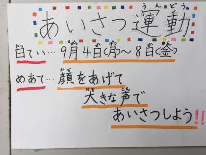 今日から金曜日まで、代表委員会の児童が朝正門に立ち、あいさつ運動を行います。