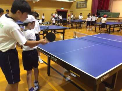卓球部 中学生のお兄さんがサーブの返し方を丁寧に教えてくれました。