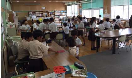 今年から15分休みの図書室開放で本の交換ができるようになったということもあり、利用する児童が増えてきています。今日は特に利用者が多く、図書委員会の担当児童も大忙しでした。