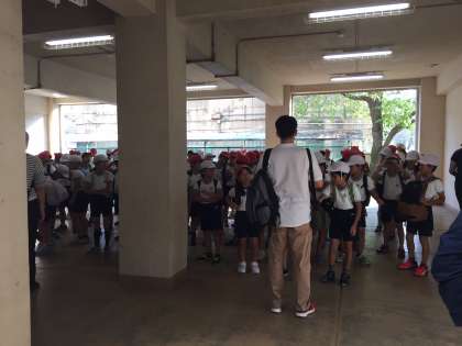 気持ちのよい青空の下、2年生と5年生が元気に遠足に出発しました。