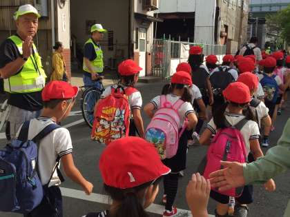 2年生は、西成区ジャガピーパトロールの皆さんが、駅までの道のりを見守ってくださいます。
