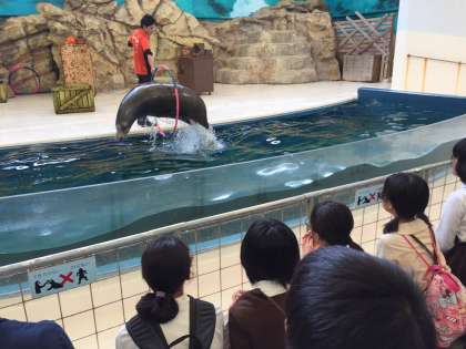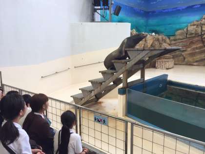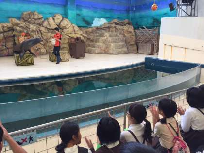 アシカの一つ一つの技に子ども達は拍手喝采です。