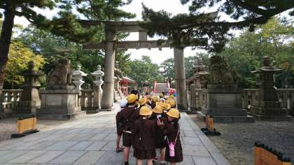 住吉大社と住吉公園を散策した後、帰りは一人ずづ切符を買って自動改札口へ。切符の買い方に戸惑っている友達がいたら優しく教えてあげるなど、助け合う姿も見られました。