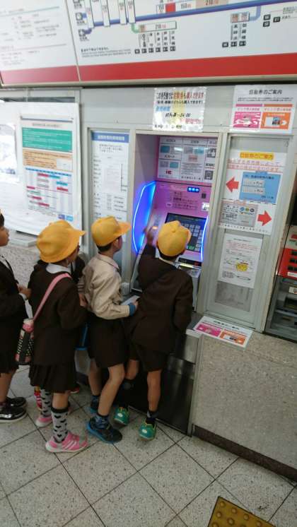 2年生の生活科の学習で、「駅のくふうを見つけよう」という単元があります。今日はその学習の一貫で、実際の駅で工夫されていることを探し、電車に乗って移動するという校外活動がありました。
