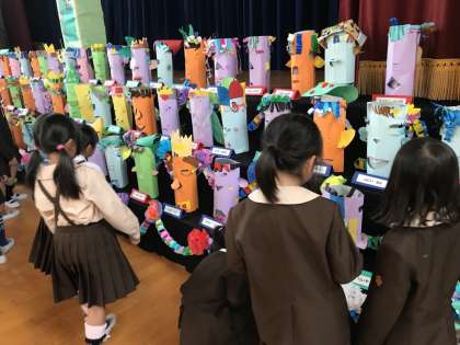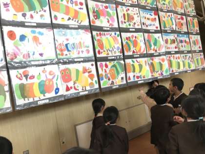 今日、明日は子どもたちの展覧会鑑賞日です。今日は1・3・5年生が講堂と多目的室に展示されている作品を鑑賞しました。みんなの作品や地域の方の作品を見る子ども達の目は真剣そのもの。それぞれの良さや工夫を感じる部分をしっかりと見つけながら鑑賞していました。