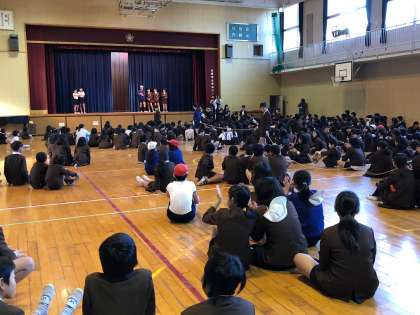 集会委員会の児童の進行で、楽しいクイズが次々と出され、