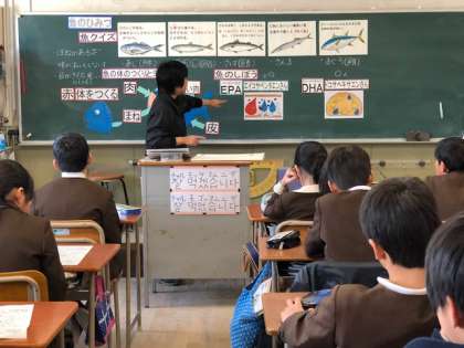 給食に登場する魚の名前と特徴、魚の体のつくり、そして、魚に含まれる栄養素とその働きを詳しく学習しました。