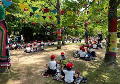 2年生になって初めての遠足。行先は長居公園です。今日は一段と気温が上がり、初夏の日差しがジリジリと降りそそいでいました。