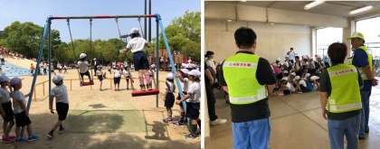 学校と玉出駅間の移動は、西成区役所の「ジャガパト隊」の皆さんに見守っていただいています。(1・2年生のみ)いつもありがとうございます。