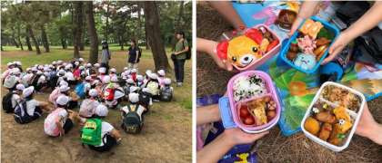 公園の大きな遊具で体をたっぷりと動かしたあとは、お弁当タイムです。