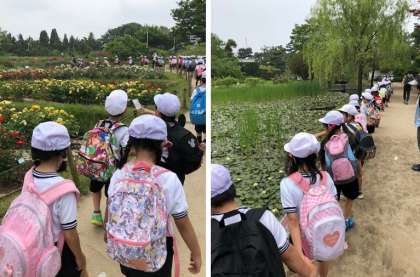 お昼からは、バラ園など、公園内のいろいろな道をみんなで歩きました。