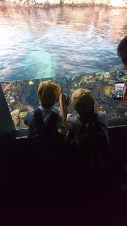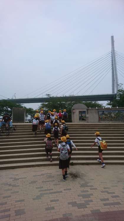 4年生になり初めての課外活動。すべて班活動で行動しました。海遊館ではたくさんの生き物を見ることができ、お弁当は海の見える広場で楽しく食べることができました。その後は日本一低い山、天保山を歩き、笑顔で学校に帰ってくることができました。