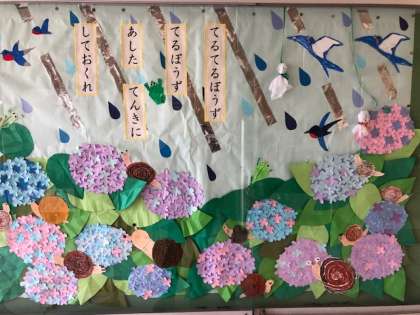 運動場で思い切り遊びたい子ども達の願いが込められた玄関掲示です。