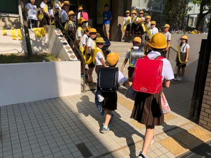 正門にずらっと並んだ代表委員会の児童が気持ちのいいあいさつで迎えてくれました。