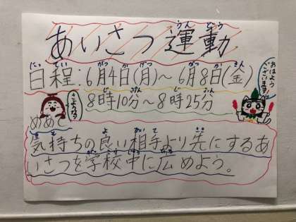 児童朝会でも、あいさつ運動についての呼びかけがありました。