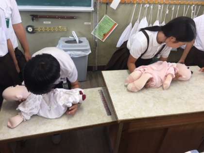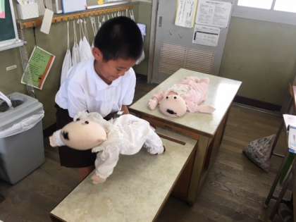 生まれてくる赤ちゃんがどのくらいの大きさで、どのくらいの重さなのかを一人ずつ体感しました。首も腕も足も安定していない赤ちゃんを抱くのは、とても不安そうでしたが、みんな上手に抱くことができました。