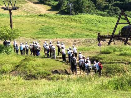 モニュメントでクラス写真を撮った後、高丸山へ出発です。