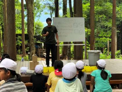 勾玉づくりの説明をスタッフの方にしていただいています。