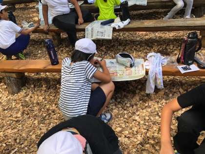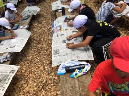 子ども達、デザインを決めて一心不乱に削ります。少しずつ形になってきています。