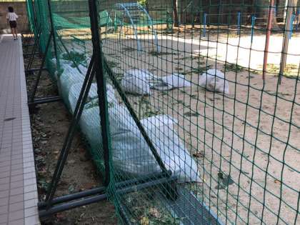 昨日の台風21号の通過に伴い、学校でも窓ガラスが割れたり、ガラスのショーケースが倒れたり、朝会台が飛ばされていたり、ゴミなどが散乱していたりなどの被害がありました。