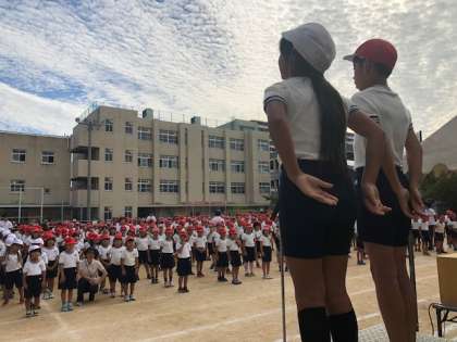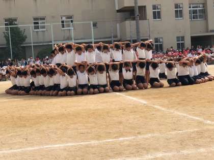 いよいよ最後のプログラムは、6年団体演技「威風堂々」です。小学校生活にふさわしい堂々たる演技でした。