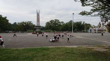 曇り空の中、服部緑地で初めてのオリエンテーリングを行いました。