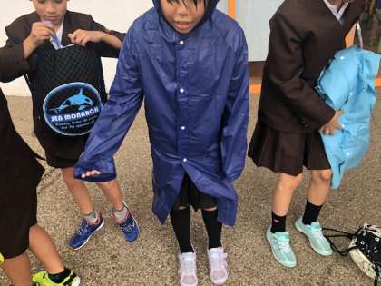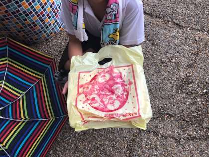 急流すべりはカッパを着ないと、びしょびしょになります。