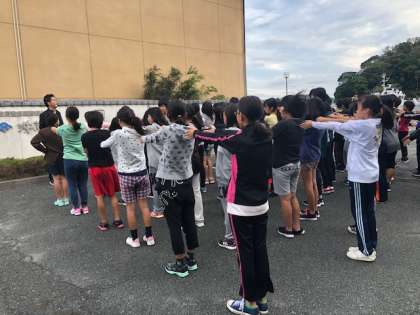 朝の集いです。少し眠そうな子どももいますが、みんな元気に集まってきました。