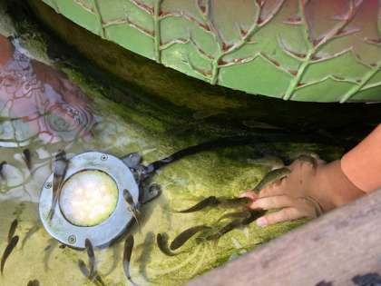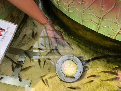 手のひらをついばむドクターフィッシュです