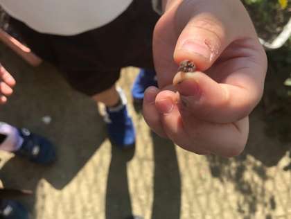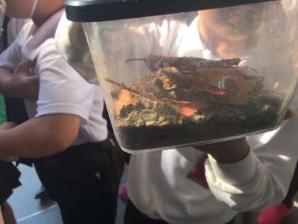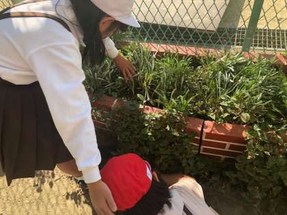 1年生が生活科の学習で虫の飼育をします。今日はみんなで一生懸命ダンゴムシを探していました。