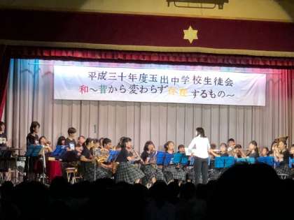 本日、校区中学校の玉出中学校で文化発表会が行われました。