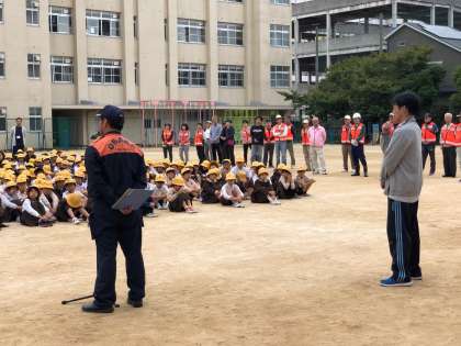 1時間目の各教室での事前指導の後、2時間目は地震・津波を想定した避難訓練を行いました。避難訓練には地域の方々にも参加していただきました。