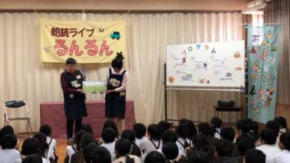2学期も、地域の読み聞かせグループ「るんるん」の皆さんが来てくださいました。