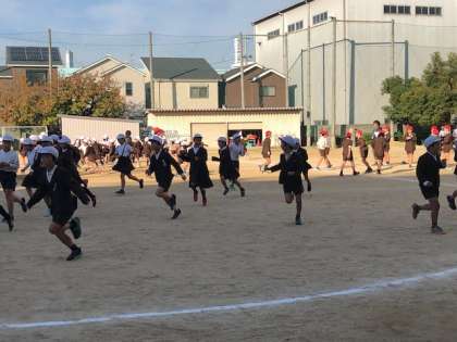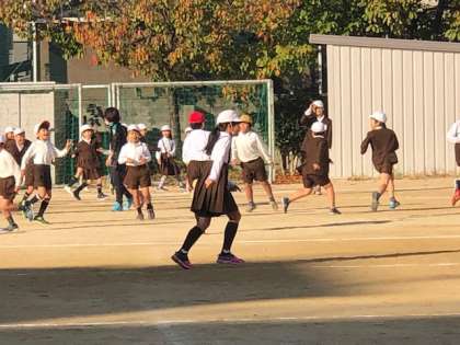 今日の児童集会は、2年生と5年生で鬼ごっこを楽しみました。朝から元気に駆け回る子ども達です。
