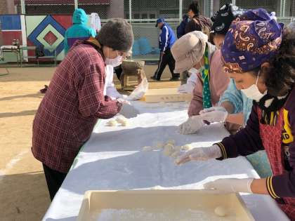 朝早くから地域、保護者の皆様が準備してくださっています。