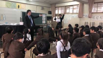 1年生から4年生の子ども達が、ゲームや歌を交えながら楽しく英語を学びました。