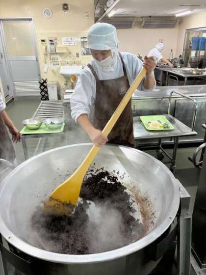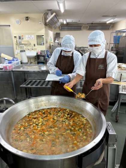 今日の献立の含め煮は、じゃがいも、つなこんにゃく、あつあげ、たまねぎ、にんじん、さんどまめが入った煮ものです。味がしっかりとしみていました。