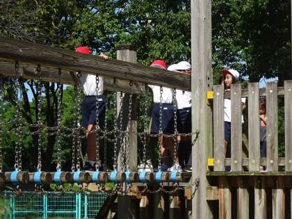 最後に、遊具で遊びました。大きな滑り台があったり、冒険遊具があったりと、それぞれに楽しみました♪