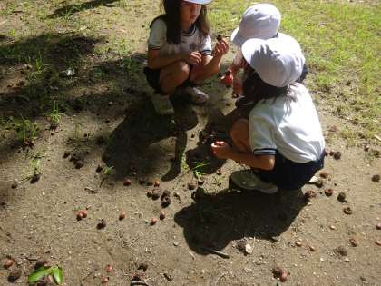 次に、どんぐり拾いをしました!どんぐりに詳しい先生に話を聞き、きれいなどんぐりをみんなで集めました。これを来週の図工で使います。楽しみにしていてくださいね。