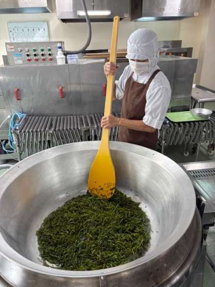 くきわかめのつくだ煮は、食感のよいくきわかめをだしで煮、砂糖、みりん、こいくちしょうゆで味付けして十分煮つめます。ごはんにとてもよく合う一品でした。