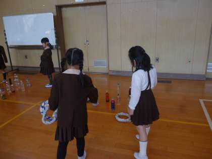2時間目の生活科の時間に、2年生が用意したおもちゃで1年生をおもてなしする、おもちゃランドが開かれました。