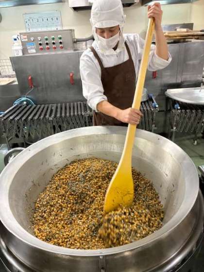 じゃこ豆は、ゆでたちりめんじゃこと、でんぷんをまぶしてなたね油で揚げた大豆に、甘辛い調味液を絡ませています。かみごたえがある、こちらもおいしい一品でした。