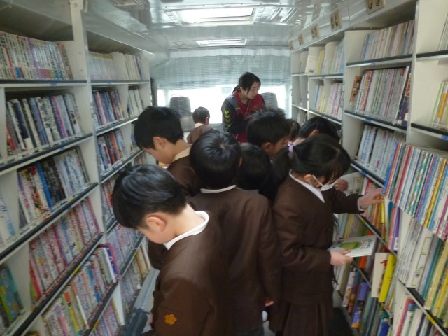 毎月、南津守小学校には自動車文庫が来てくれます。