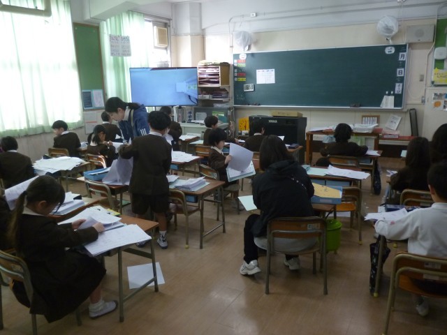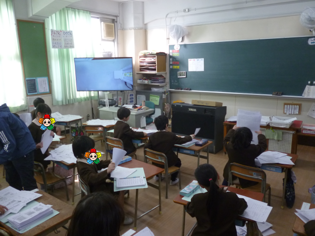 これまで学習してきたプリントを返却し、自分のファイルにとじる活動を行いました。