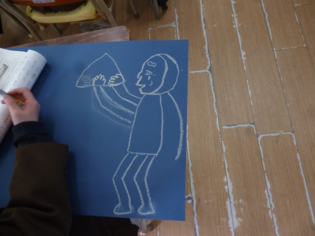 3月5日(木)2年生 図画工作「かさこじぞう」