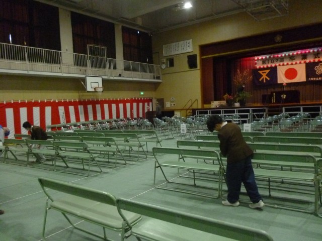 体育館の設営や玄関・下足室の清掃など、それぞれが自分の役割に責任をもち、気持ちを込めて一生懸命取り組む姿が見られました。