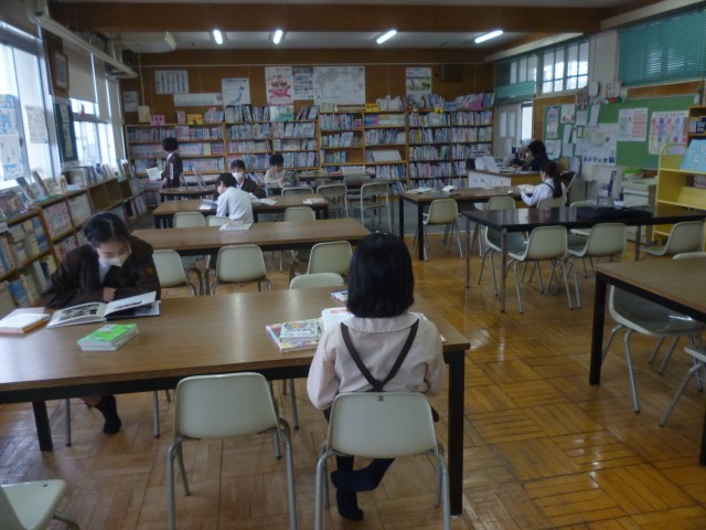 図書室では、それぞれが自分の興味のある本を選び、静かに読書に取り組んでいました。