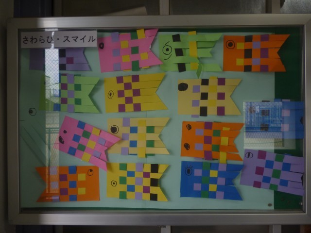 学年をこえたつながりの中で、笑顔あふれる時間となりました。さわらびタイムで作成したこいのぼりを、職員室前に掲示しました。
