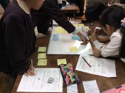 11月27日、加賀屋小学校の4年生で、公開授業が行われました。収集した情報を整理分類し、グループ化する活動をしました。